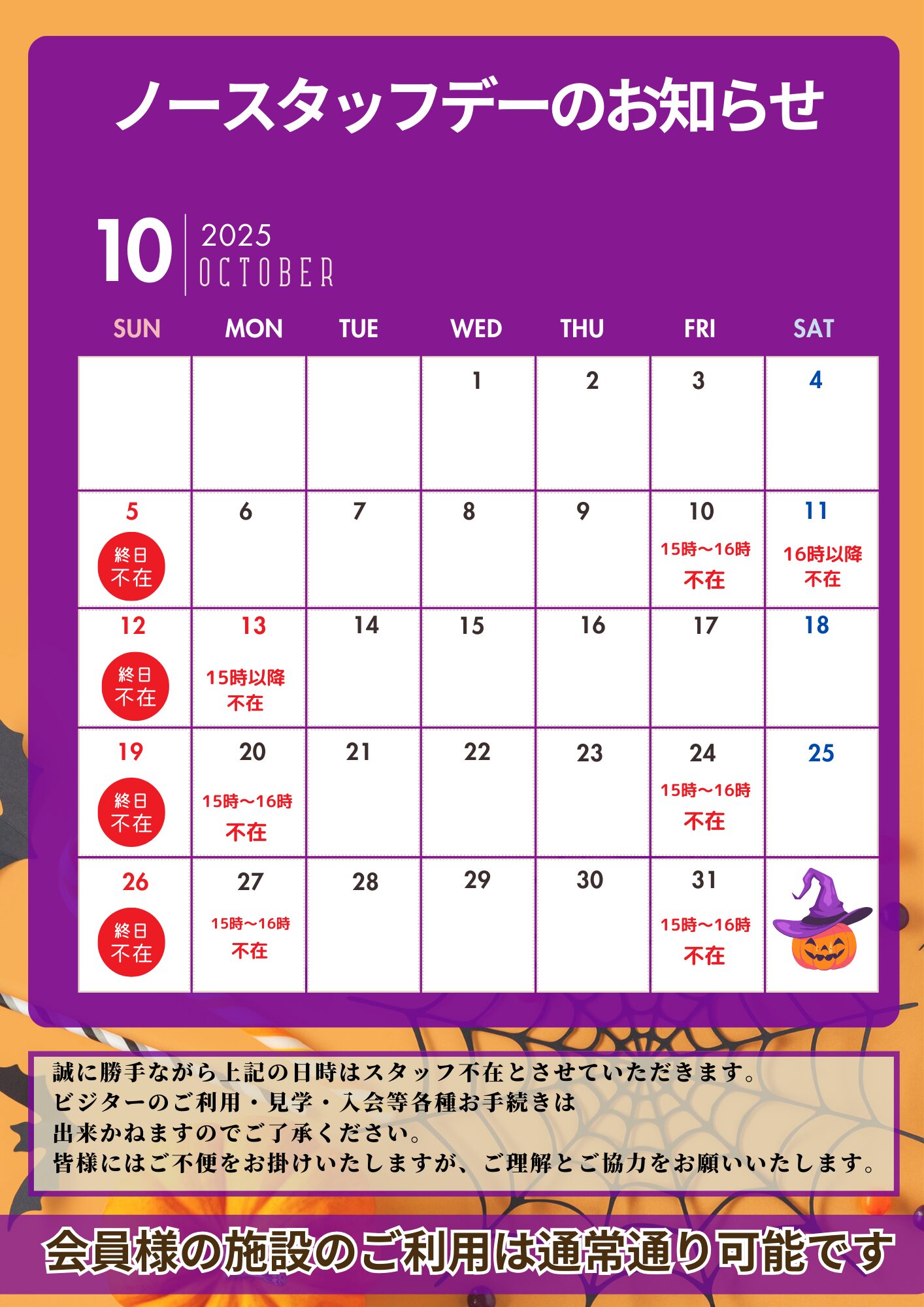 【10月ノースタッフデーのお知らせ】