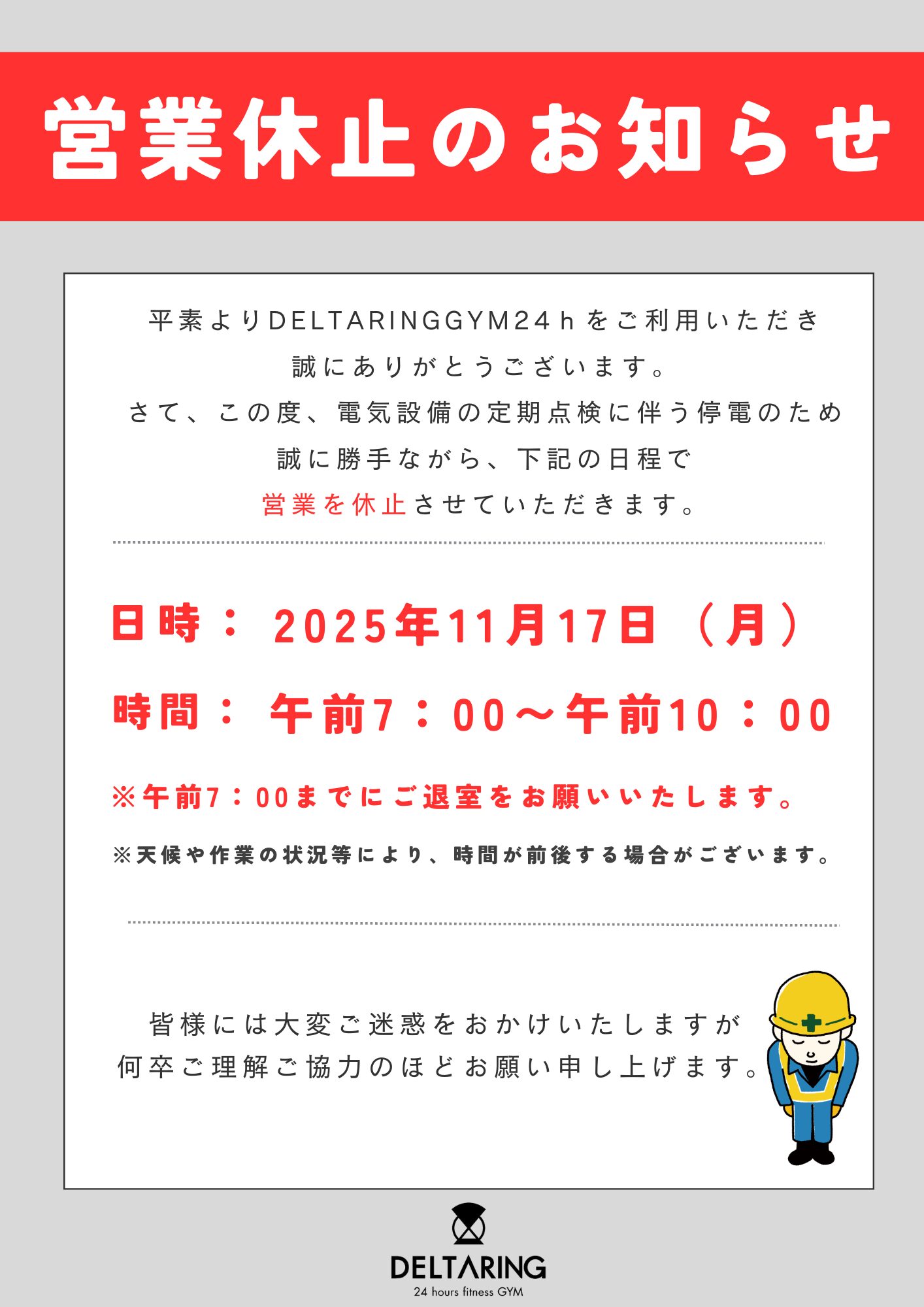 いつもDELTARINGGYM24hをご利用いただき誠にありがとうございます。